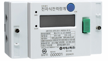 | 모델명(model) | 상선식(phase/wire) | 전압(V) | 전류(A) | 주파수(Hz) | 계기정수(pulse/kWh) |